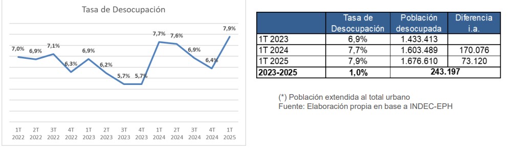 Según el análisis del Instituto de Unidad Popular dirigido Ana Rameri y Claudio Lozano, “El impacto es particularmente grave entre los jóvenes: la desocupación juvenil alcanza el 19,2% en mujeres y el 15,1% en varones. Además, se incrementa la presión sobre el mercado laboral: más del 24% de la población económicamente activa está desocupada o busca otro empleo, reflejo de que el trabajo ya no garantiza ingresos suficientes”.