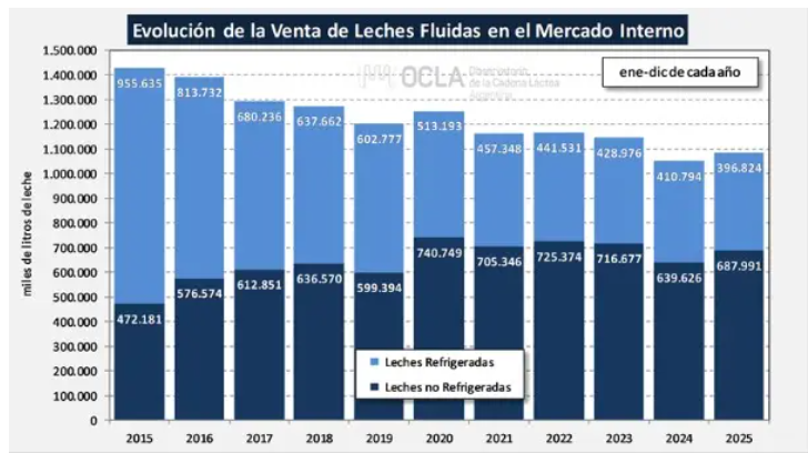- Caída drástica del consumo interno: Un informe del Observatorio de la Cadena Láctea Argentina (OCLA) reveló que el consumo de leche y lácteos cayó un 12,7% en noviembre de 2025, y no se recupera ni a los niveles de 2024. El mercado interno, principal canal para pymes, se encuentra deprimido por la pérdida de poder adquisitivo salarial de las familias.